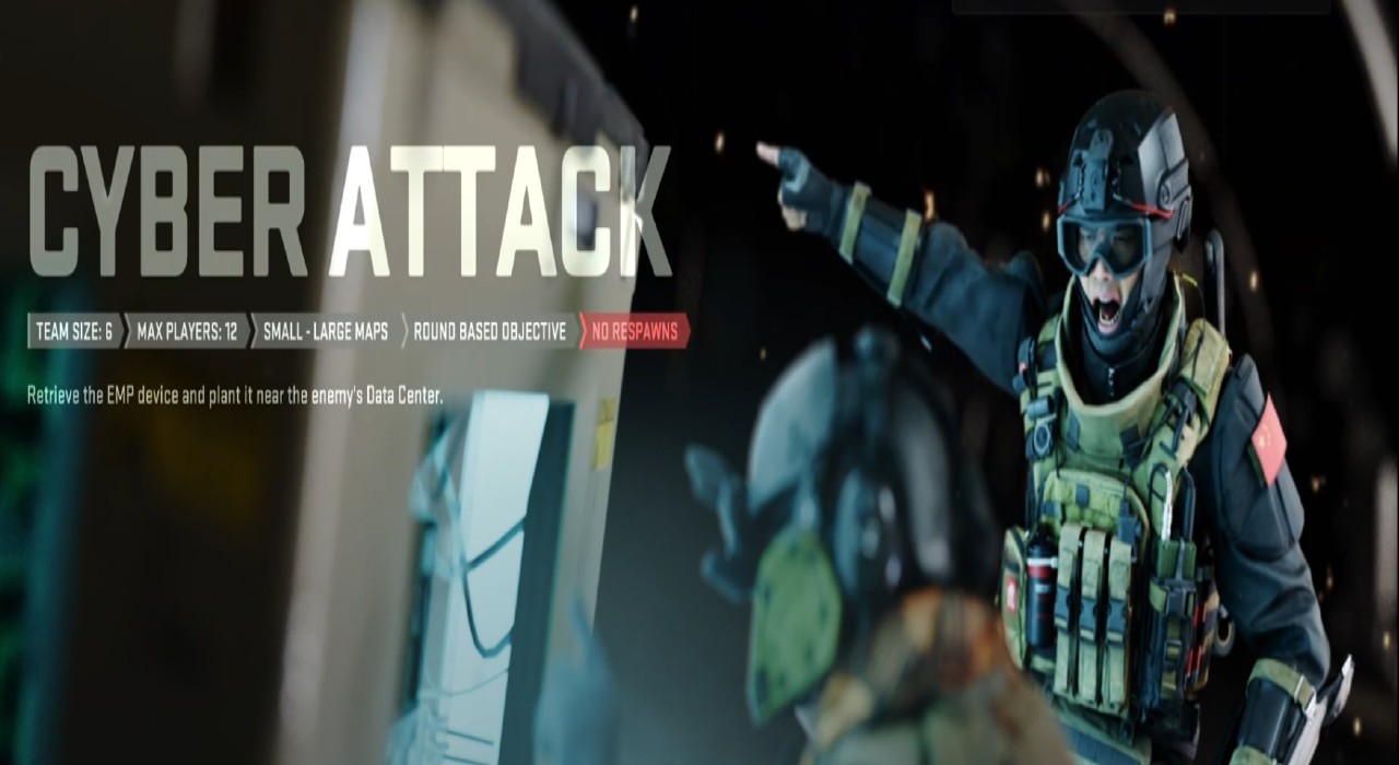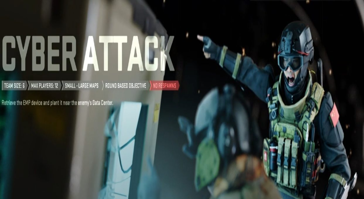Cyber attack is like its 2019 rendition and sees it combine aspects of Search & Destroy and Sabotage along with the ability to revive teammates. Two teams of 6 will compete to pick up a neutral EMP bomb that spawns at a random location at the center of the map each round. The goal of the mode is to take this EMP and plant the bomb on the enemies’ Data Center, then defend the bomb until it blows up. A team will be rewarded with a point when a bomb detonates the enemy Data Center or when all members of the other team are killed. Unlike Search & Destroy, you can revive killed teammates, allowing you to keep the battle up as everyone fights over the bomb. The game ends when one team reaches 5 points.