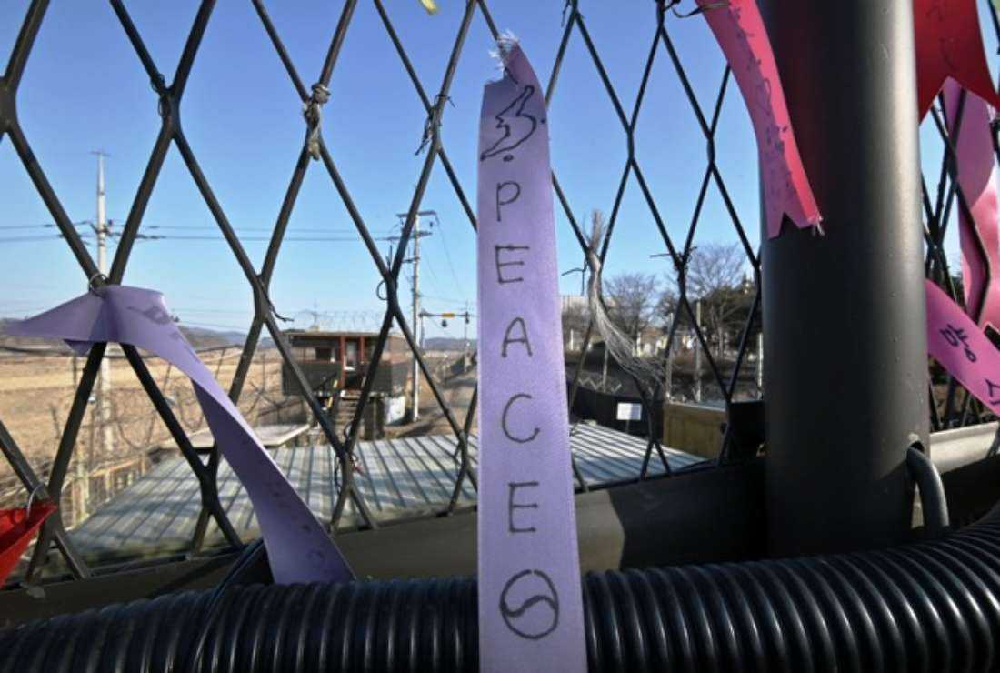 Ribbons wishing for peace and reunification of the Korean Peninsula hang on a military fence at the Imjingak peace park near the Demilitarized zone (DMZ) dividing the two Koreas in Paju on Jan. 1. (Photo: Jung Yeon-je / AFP)