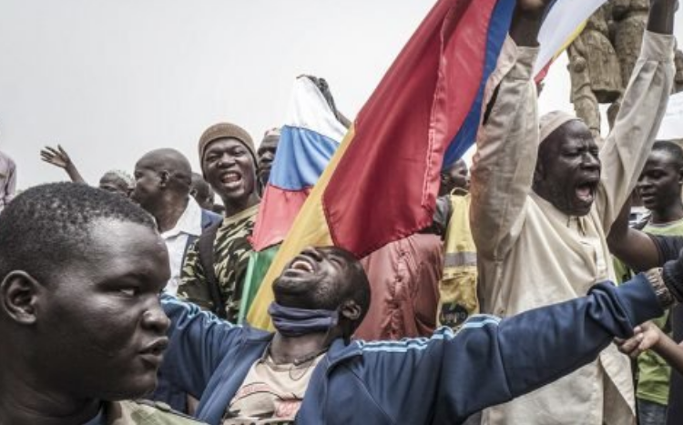 At 2pm on 29 October, the tar was burning in Bamako. As the mosques emptied, thousands of people gathered at Independence Square. In the processions that led them to the rallying point, the Russian flag accompanied the national colours. The words ‘France, get out’ and The Malians’ slogan ‘Long live the Russians’ appeared on some of the posters and signs that the demonstrators proudly brandished.
