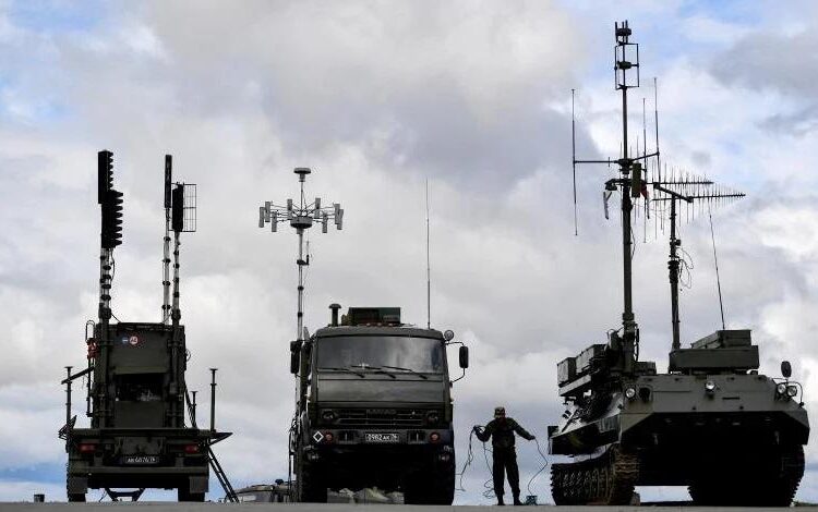 They included TORN and SB-636 Svet-KU signals-intelligence systems that can pinpoint Ukrainian units by tracing their radio signals, RB-341V Leer-3s that combine Orlan-10 drones carrying cellular-jamming payloads with a command post on a KamAZ-5350 truck, R-934B Sinitsa radio-jammers and R-330Zh Zhitels that block satellite links.