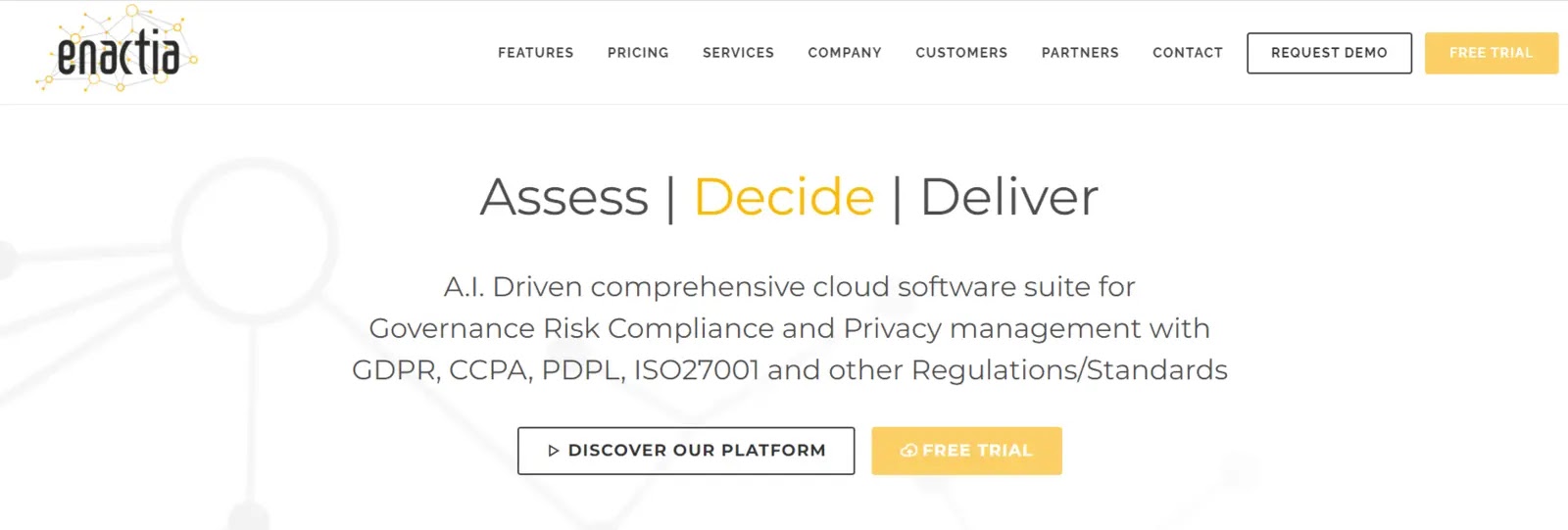 10. Enactia | evaluations of compliance computer request and data subject management. Tickets and managing tasks. storage for documents. integrated registry for risks. data breach and managing incidents. |