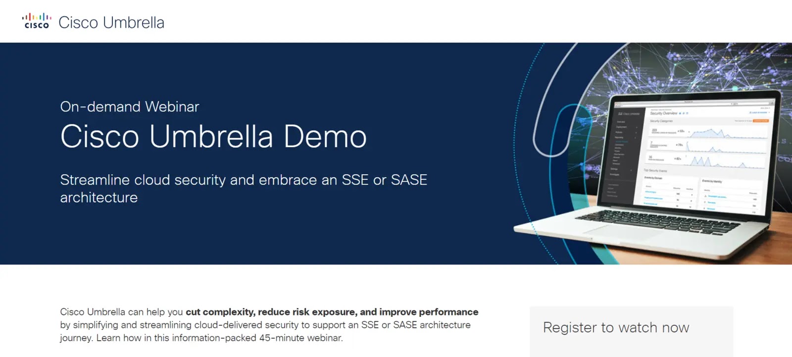 | 8. Cisco Umbrella | 1. DNS-based security 2. Web filtering and content controls 3. Threat intelligence integration 4. Secure web gateway 5. Cloud-delivered architecture |