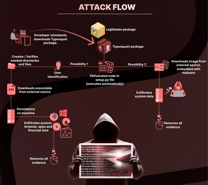 An unknown threat actor has been observed publishing typosquat packages to the Python Package Index (PyPI) repository for nearly six months with an aim to deliver malware capable of gaining persistence, stealing sensitive data, and accessing cryptocurrency wallets for financial gain.