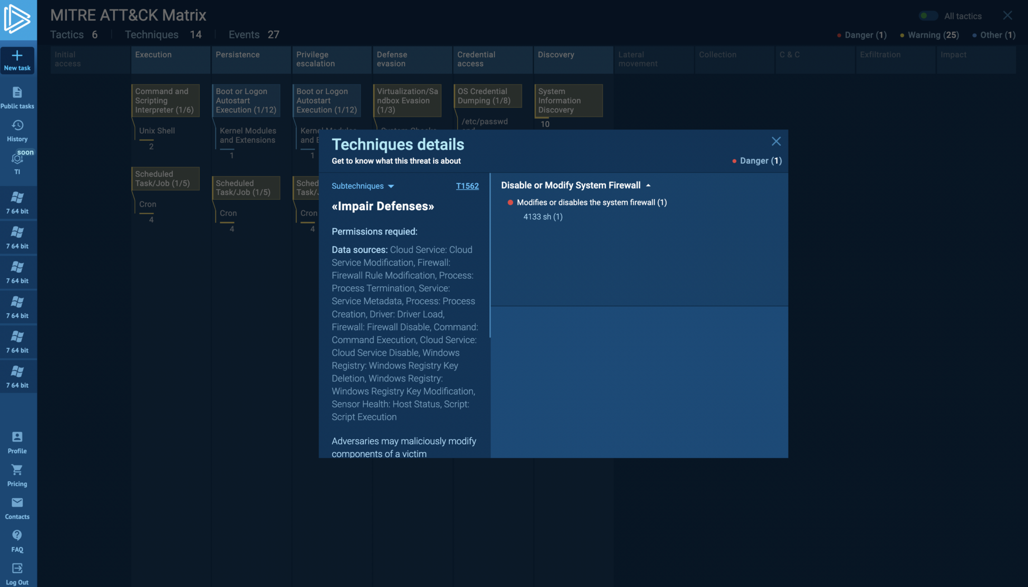 The platform also features an MITRE Matrix report that helps identify the kind of threat or family based on suspicious behaviors recorded in the Linux sandbox task. This feature is handy for quickly aligning suspicious behaviors with TTPs.