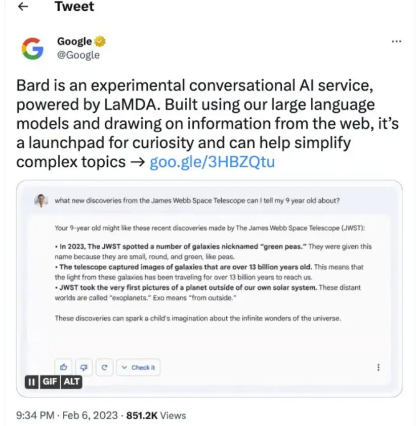 Unfortunately, just hours before the official launch of Bard in Paris, it was revealed that the chatbot had provided an incorrect answer.