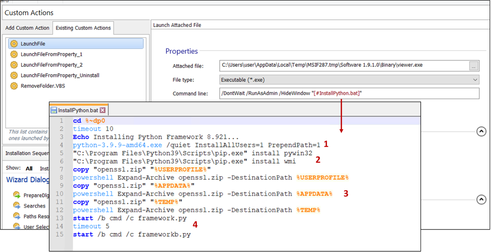In order to unpack these files, the PyArmor-Unpacker program is required as they were protected with PyArmor. As a template for executing Python code with elevated privileges, the files use code copied from a Stack Overflow question.