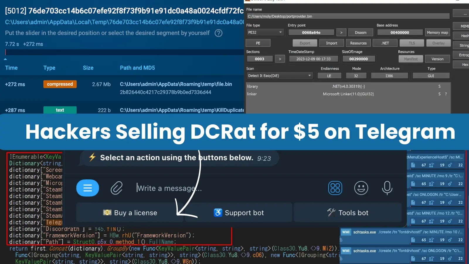 Recently, the cybersecurity researchers at ANY.RUN identified that hackers are selling DCRat subscriptions for $5 on the Telegram groups.
