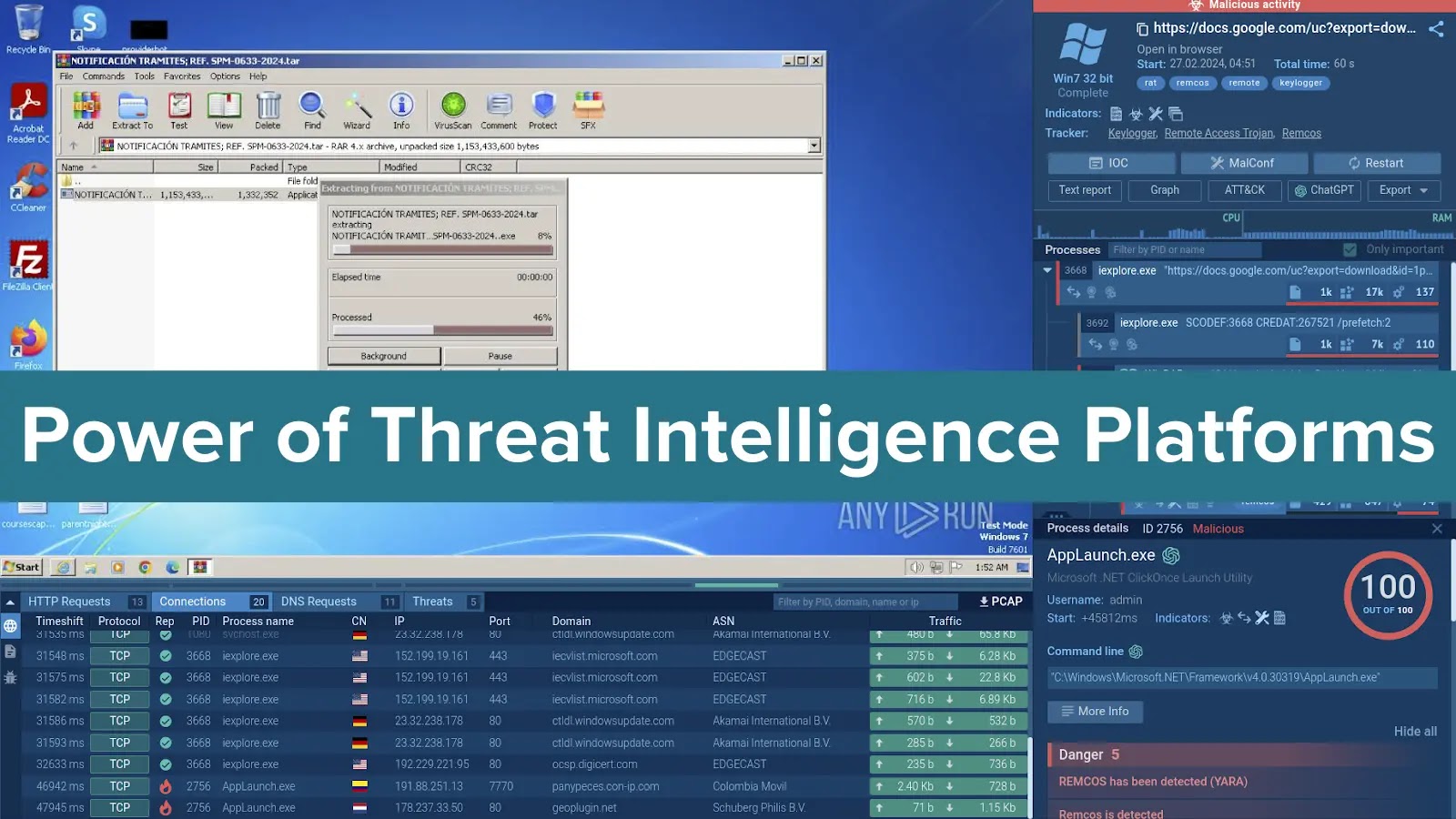 We can explore each of these samples in detail by going over to the ANY.RUN sandbox to view the network and registry activity, study the processes launched during the malware execution, as well as to collect valuable IOCs and comprehensive threat reports.